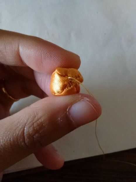 Ahora empezar a comprimir la estructura hueco dentro de una esfera bien firme. Que esto pase la aguja entre el opuesto lado y tire del hilo firmemente. Hacer esto un par de veces y la estructura plana hueca del paso anterior se iniciará lentamente cada vez más pequeñas y que se asemeja a una bola. Puede utilizar sus dedos para empujar a la tela juntos y tire del hilo firmemente para que no tenga los bordes sueltos. Si encuentras las piezas sueltas que sobresale, simple pasen a través de la aguja y tiran del hilo para que se trajo firmemente hacia el balón. Para terminar, atar un nudo y corte el hilo.