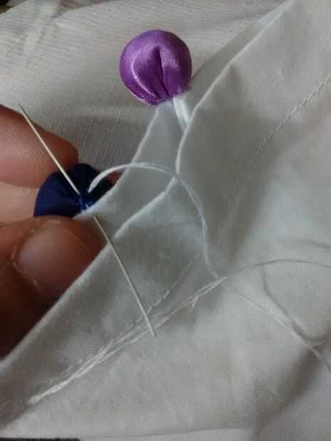 estas horquillas coloridas están hechas de botones de tela cubierta con hermoso detalle de ganchillo. Los broches botón fueron comprados en la sección de adorno de libro de recuerdos de la tienda de artesanía. Usé pinzas para quitar las clavijas de m