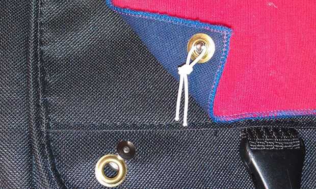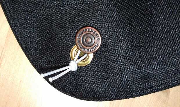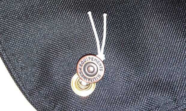 - Resbalar la cola del botón por el ojal de la solapa del bolso