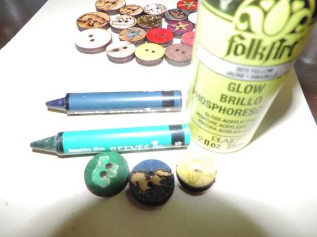OK, algunas de las cosas que probé eran lápices de acuarela (debe cubrirlos con barniz cuando se seca o si fueras a decir, llorar, tus lágrimas podrían causar el color ejecutar. Los 2 botones que he intentado con los lápices de colores están en la tercera foto con el resplandor en el botón oscuro. El resplandor en el color de la pintura oscura era amarillo pero muy claro y el resplandor en la parte oscura también fue muy claro. He tenido mejor suerte con una variedad de brillo en la pintura oscura sin otro color proporcionado y brillaba mucho más brillante. Merece la pena ir de compras alrededor para una buena pintura y ahora que tienes un par de meses antes de HALLOWEEN. Botones que brilla en la oscuridad. No tienes que restringir los botones cerrar suéteres en halloween. Imagen de un gato asustadizo cosido en un lugar que aparece en la oscuridad.