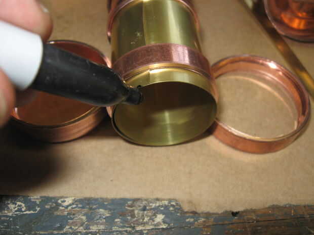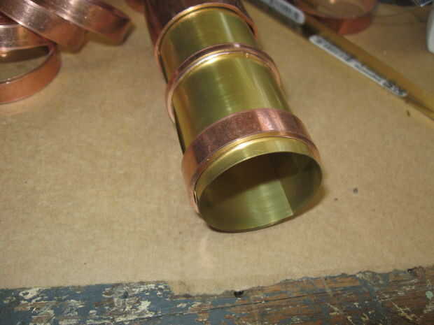 Usar una hoja artesanal de latón para hacer un cuello interior que utilizo para unir todas las partes no móviles de la cerradura.