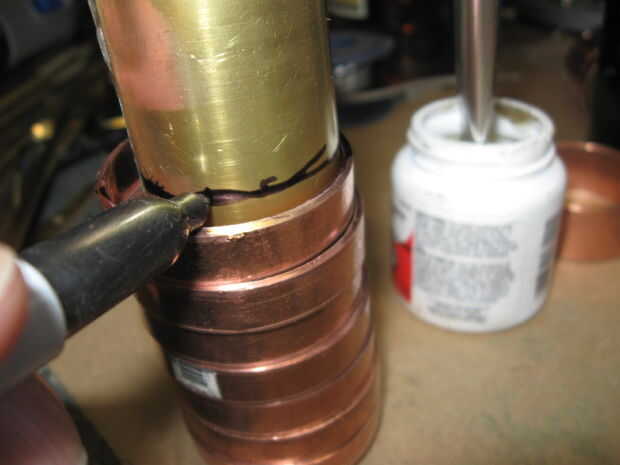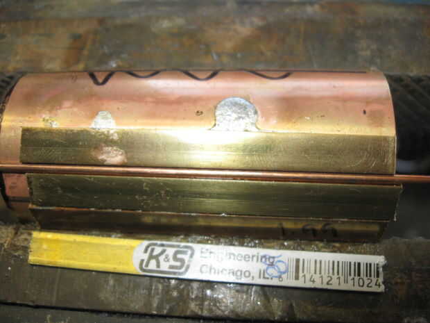 El metal es soldar usando las prácticas estándar. Primero limpiar el metal con papel de lija, aplicar el flujo, aplique calor aplicar soldadura.
