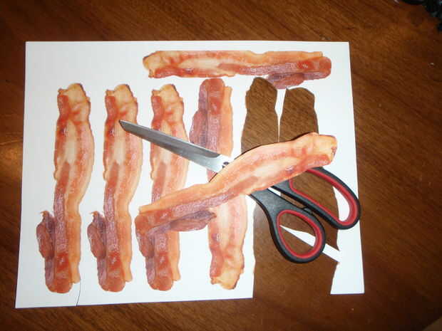 Su imagen favorita una rebanada de tocino, preparar una hoja de tobogán etiquetas de tocino. Usé blanco tobogán etiquetas como las etiquetas de claro no aparece bien en el marco negro. Si está utilizando un marco blanco, las etiquetas claras deberían funcionar bien. ¿No familiar con tobogán etiquetas? No se preocupe, aprender acerca de ellos aquí.