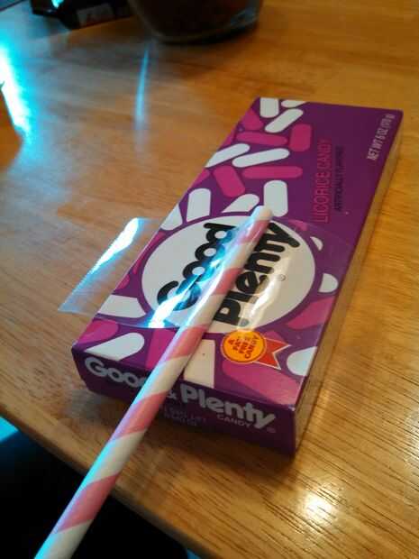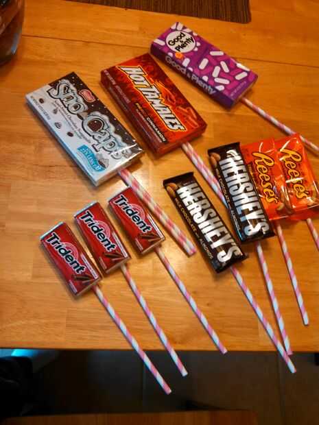 Una paja en la parte posterior de cada una de las cajas del caramelo de papel con cinta adhesiva.