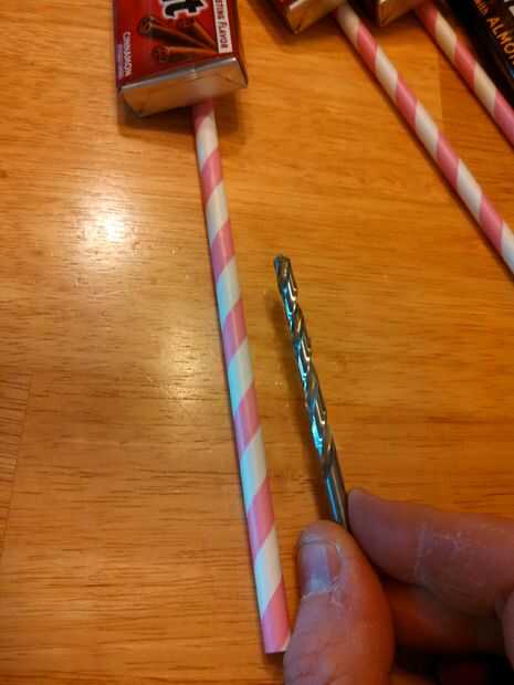 Usé 2 brocas de taladros para perforar la espuma. La broca más pequeña es para la paja sola y es del mismo tamaño que la paja.