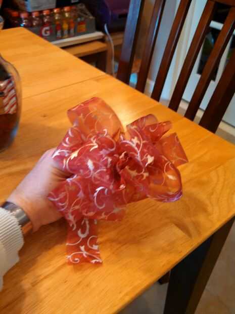 Os adjunto la proa a la vasija con el alambre de floristería y entonces corrí para hie el cable la cinta rosa alrededor del cuello del florero.