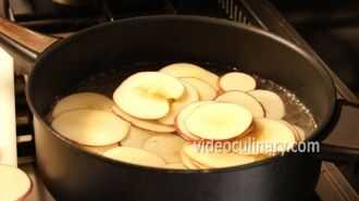 Cortar 800 gramos (28 oz) de manzanas rojas firmes en rodajas de 2 mm. Traer un litro de agua y 350 gramos (12 oz) de azúcar a hervir, revolviendo para disolver el azúcar. Añadir las rodajas de manzana en el almíbar hirviendo, llevar a hervir y escurrir. Enfríe por completo.
