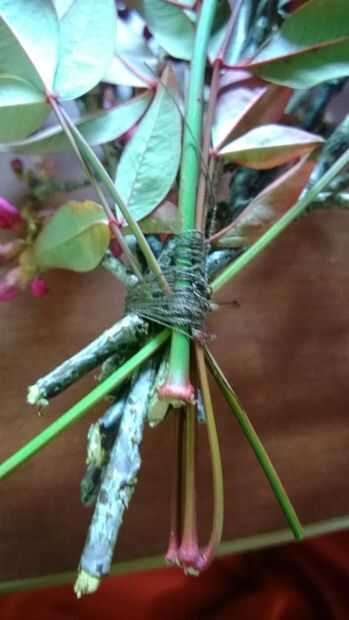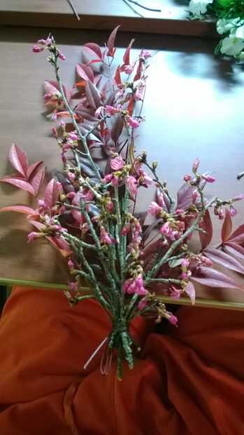 En este punto vas para asegurar cierta vegetación (aunque el mío es rojo) detrás de la base utilizando la cadena otra vez. Recuerde mantener el mismo general forma de ventilador y durante todos los pasos y todo tan proporcional como puedas. Como se puede ver, siempre establecer y observar la formación antes de por fin átelo.