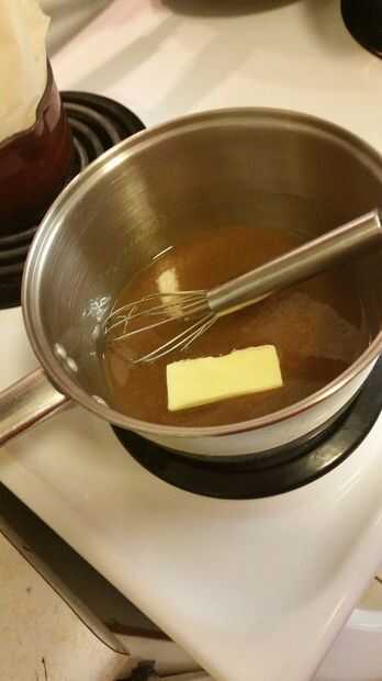 2. retirar del fuego y agregar mantequilla, miel, vainilla y bourbon. Deje que se enfríe.
