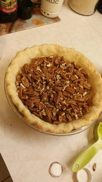 2. uniformemente extendido las nueces picadas en la parte inferior de la corteza de pastel prebaked.