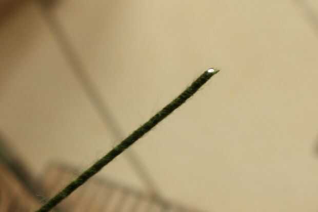 3. Extremo puntiagudo primero, inserte el vástago a través de la bola. No se alarme si algunos de la tela ha desentrañando en la parte superior de la bola de fieltro.