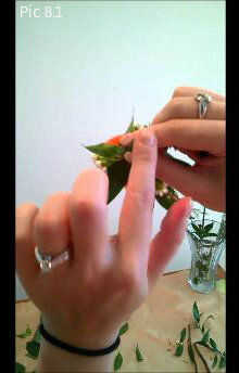 • Después de cortar las ramitas innecesarias y alambre puede acabar grabando la flor en el ojal.