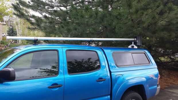 Conecte el tubo de PVC de la longitud necesaria para el acoplador de fuera de la caja con pegamento de PVC., para mí eso fue una longitud de 10 pies de tubería de 1.5 pulgadas. Algunos pueden desear un tubos de mayor diámetro con un acoplador correspondiente para sus barras.,