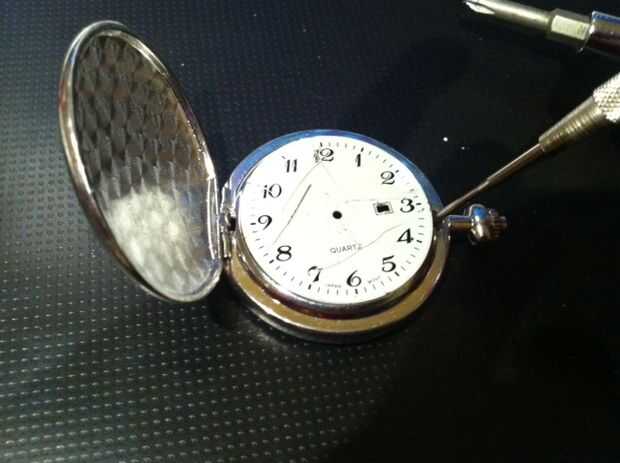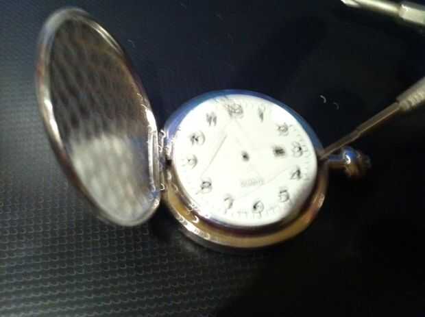 Un reloj de bolsillo (no un reloj de pulsera). Mina compré en Walmart por $10