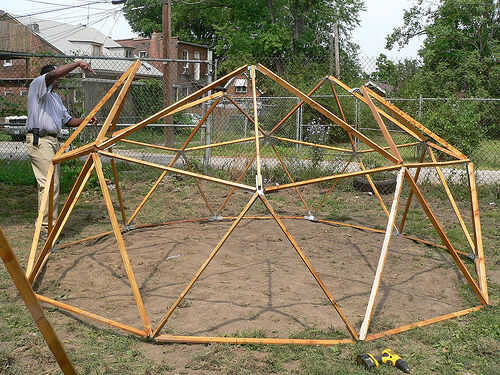Finalmente conseguí a publicar el siguiente vídeo para la construcción de la cúpula geodésica. Reconozco que no hay muchos detalles "instructivo" en éste, pero muestran el trabajo que está involucrado con la preparación de la tierra para el edi