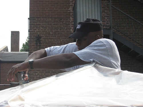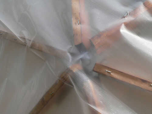 Repetir el proceso hasta que haya cubierto la cúpula. Usted tendrá que poner una escalera dentro de la cúpula a grapa el plástico sobre algunas de las partes superior (ver foto).