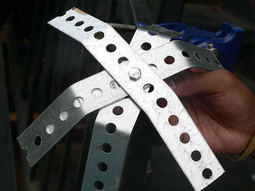 3) montarlos por conexión en el agujero central (el séptimo agujero) con una tuerca y un perno. Hacer esto para los nueve de los conectores. Una vez que tengas todos estos pasos terminados, estás acabado de fabricación de los conectores.
