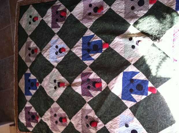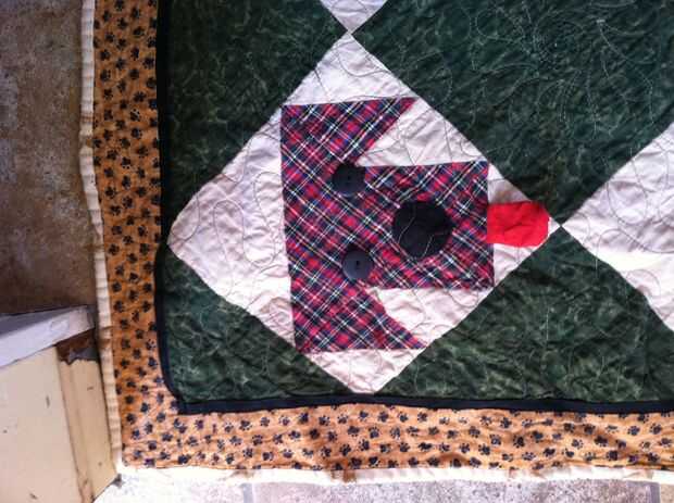 Pedazo de perros juntos como se muestra en la imagen y medida bloques sólidos para ser igual a los perros. Usted puede hacer su frontera sin embargo gruesa o fina que desee. hacer la nariz hay que attatch el fliesofix y hierro al perro y hacer una manta stitcharound la nariz para evitar que se acercan. También llene las lenguas con un bateo de mi hijo querido ayudarme con este paso! He hecho esta colcha como fundas de almohada también y utiliza botones de diferentes colores para los ojos y es muy lindo también!