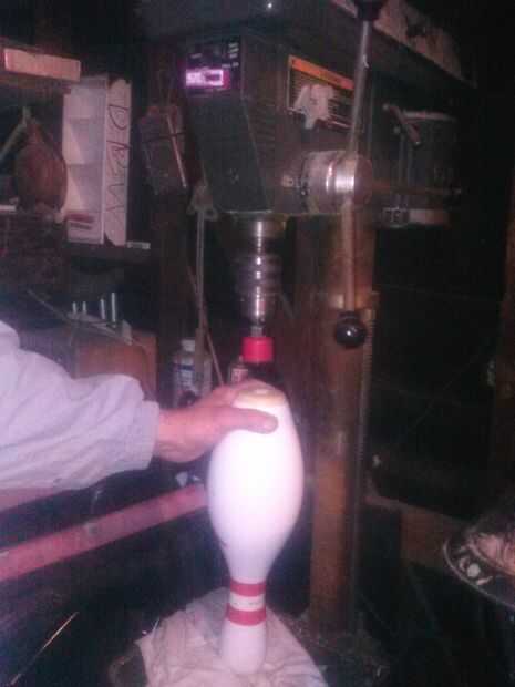 Lo que usted necesita: un pin de bowling, taladro o taladro de columna, aceite penetrante, brocas de pala, bondo y widdling herramientas junto con un poco de paciencia!