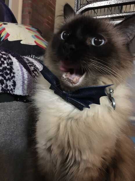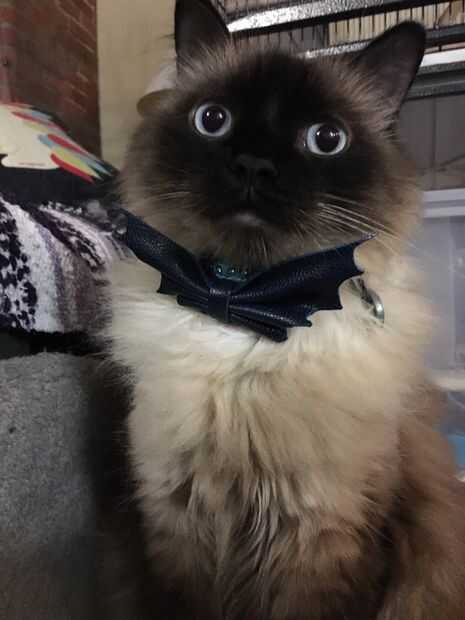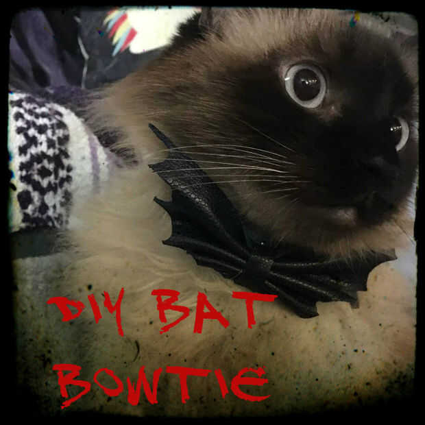 Como se menciona en mi otra pajarita Instructable, mi gato Stormy se ve increíble en ellos. Stormy es tan impresionante que necesita toneladas de ellos. La inspiración para este diseño vino de un Pin para un disfraz de humano que incluía una ala de murciélago estilo pajarita. Decidí escalar hacia abajo y hacerlo en cuero para ir con traje de Halloween de tempestuoso.