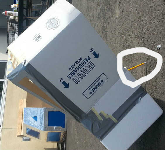 Una vez han hecho todos los pasos y hecho que realice lo mejor posible. Deberás ajustar la cocina solar térmica al sol. Ahora este es un paso muy vertical, lo que significa que puede hacerlo sin embargo desea. En este caso hemos utilizado dos lápices para sostener la olla de la caja en un determinado ángulo hacia el sol para conseguir la temperatura lo suficientemente alta para el alimento a cocinar. Se puede utilizar un libro, roca, ladrillo o cualquier cosa que haría que el cuadro se incline en distancia que hace que el uso de la luz óptima.