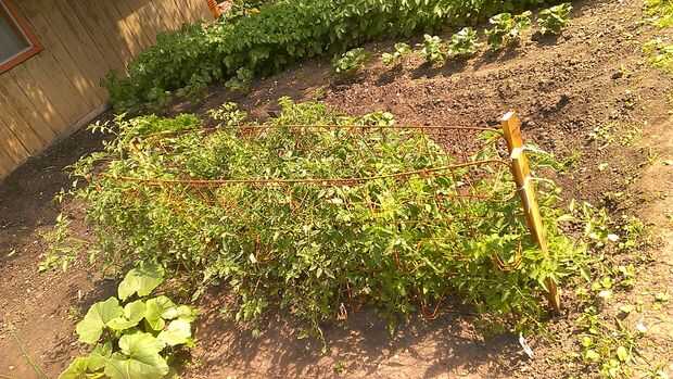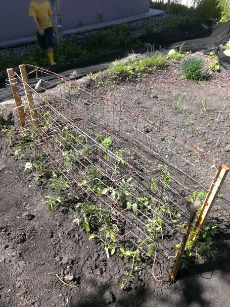 escaleras de tomate (similares a las jaulas de tomate) son excelentes para espacios pequeños--como levantar camas contenedor--porque ayudan a la planta a crecer para arriba y no hacia fuera.La variedad $1,99 endebles que probé el año pasado, requiere