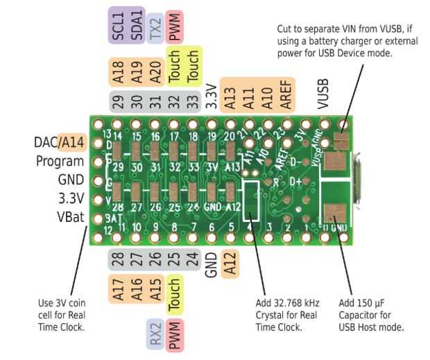 Había soldado una resistencia de 270 ohmios en serie con los pernos de ánodo del LED. Los pernos Teensy apoyan corriente (20 mA máximo) y quería asegurarse de que no debe exceder ese valor. Luego doblar las resistencias y pegado en el piso del recinto y lo hice igual con el Clip de la batería y el jefe del Pin de mujer 4. Con todo firmemente en su lugar, soldado los cables a los pines Teensy como se muestra en la imagen. Por último, había soldado el cristal a la Teensy que podría utilizar el RTC interno. Recuerde poner un pequeño trozo de cinta aislante bajo el cristal o podría cortocircuito pin 3 y pin 4 con su caja metálica.