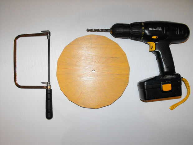 Cortar un círculo en el tablero. El diámetro debe ser del tamaño de su pie. Si no tienes pies, (lo sentimos) hacen 12 pulgadas. Puede lijar o cortar 16 superficies planas iguales alrededor de la circunferencia. Perfore un agujero en el medio, el tamaño de la cuerda.