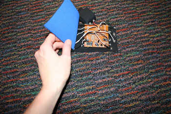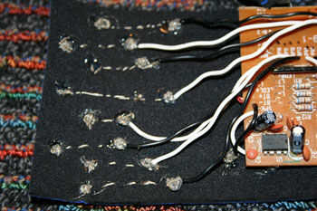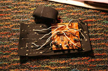 Use velcro o pega la placa de circuito para el neopreno en un lugar donde fácilmente puede conectar los cables (por lo que no está cubierta donde van los broches de presión)
