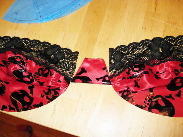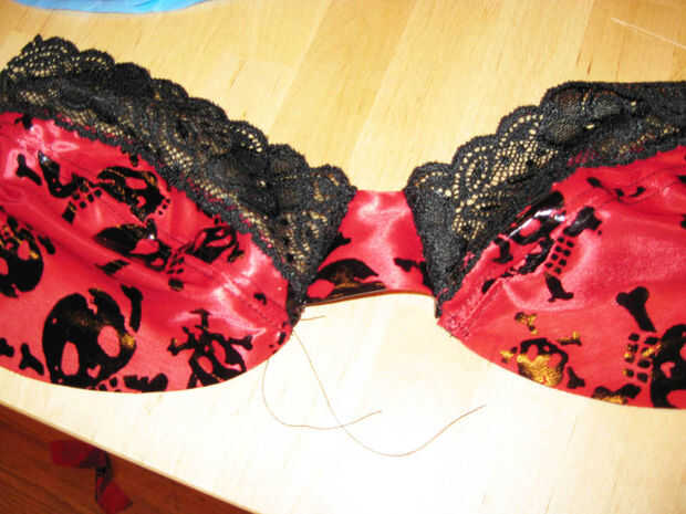 Coser juntos la estancia en la parte superior (e inferior si no cortado en un pliegue) y gire derecha hacia fuera. Perno en el interior de las copas, emparejar los bordes superiores. Coser un poco menos de un cuarto pulgada margen, como los canales de underwire será el cuarto completo de pulgada.