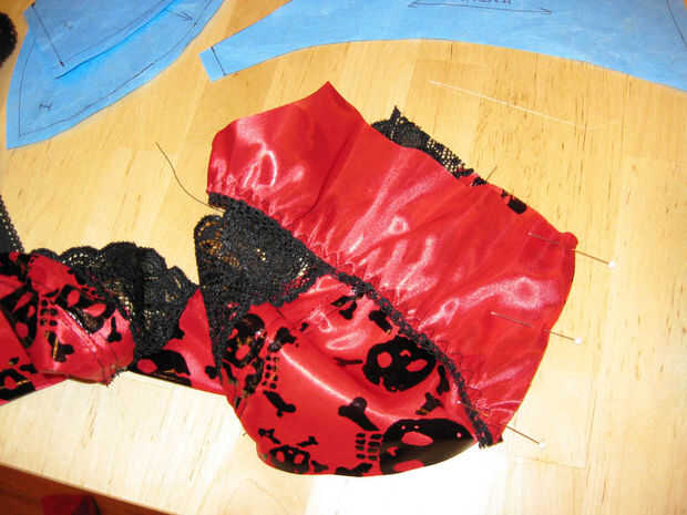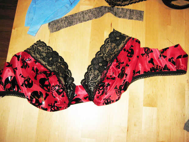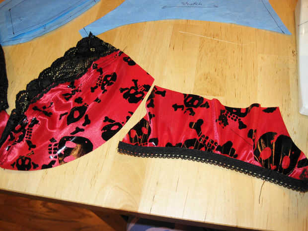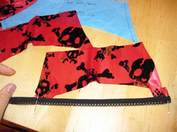 La técnica de costura para unir elásticos de la ropa interior se explica en mi bragas instructable, en el paso sobre el tramo elástico.