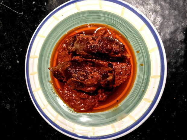 Braciole... rellenos de arrachera en salsa de tomate/crema (4 / 4 paso)