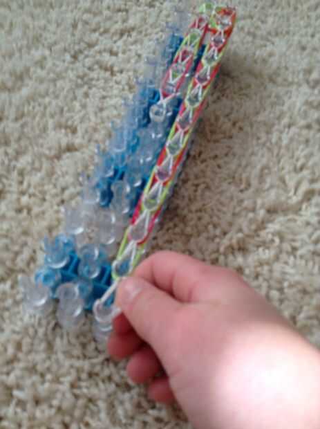 este es mi primer instructable diciéndote cómo hacer una pulsera de telar del arco iris triple.Paso 1: fuentes de Usted tendrá tablero de telar del arco iris, bandas y el gancho.Paso 2: Tres filas de bandas Poner tres filas en el telar como mostré ar