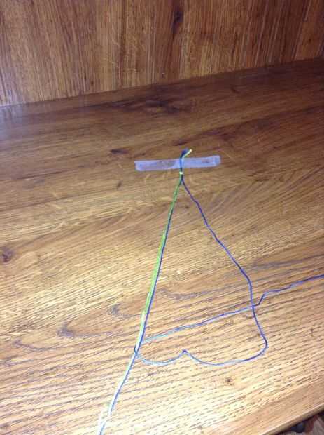 he elegido 3 colores: azul, verde y amarillo.  Pero usted puede en cualquier lugar entre 3-8 colores (teniendo en cuenta que los colores más eliges cuanto más gruesa sea la pulsera).  Cuando se hace debe este aspecto:Paso 1: Cómo empezar: Comenzar cu