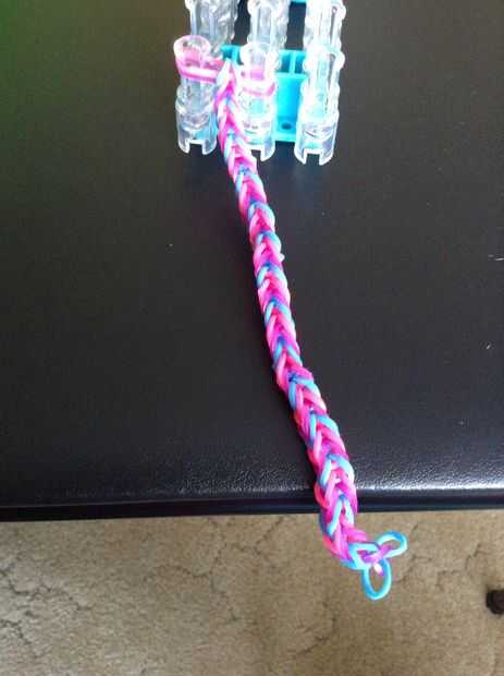 heres una pulsera de cola de pescado de telar bandaPaso 1: materiales necesitatelar de mesa o los dedosun gancho debandas de gomay clip de s o c clipPaso 2: colocación de las bandas de goma y enganche hacen un ocho en dos clavijas hacen las otras dos