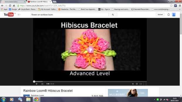 cómo hacer una pulsera de hibisco con telar del arco iris