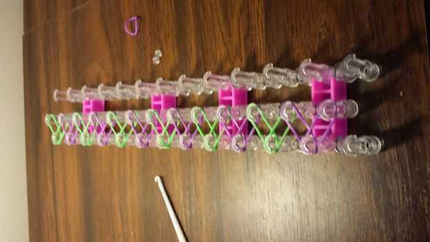 este diseño es muy fresco y divertido para hacer. Espero que os guste estas instrucciones!Paso 1: Cómo empezar Primero te vas a poner tu telar en forma rectangular.Paso 2: Cómo colocar elásticos Ahora vas a conseguir cualquier color que desea y elegi