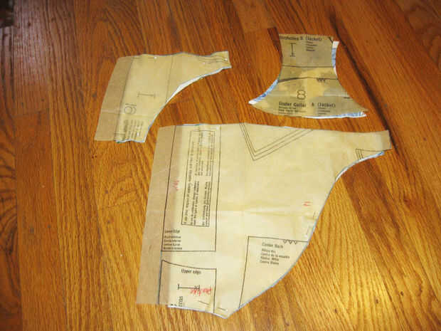 Mi patrón se corta con la parte delantera y en el doblez, pero no la pieza de la entrepierna. Si tienes un medio patrón de entrepierna, corte justo en el pliegue, dos veces. Quiere un frente, una parte posteriora y pedazo de una entrepierna de la tela principal y pieza de una entrepierna de guarnición. Una camiseta vieja funciona muy bien para el forro de la entrepierna!