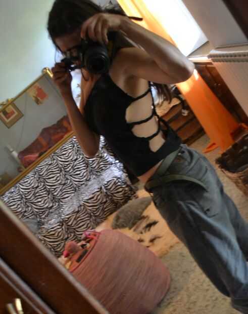 Hacer un top de frío hombro moda, barato con una camisa de franela thrifted. Marcó esta camisa de franela como nuevo en la tienda de segunda mano por sólo $3. Me inspiré para añadir recortes de frialdad después de ver algo similar en el centro comerc