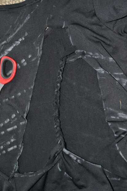 Cortar la primera tira vertical de la parte inferior, que cortó en tres y lo de la trenza.