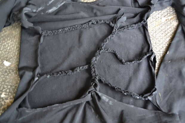 Coser los bordes de las trenzas horizontales a la vertical uno como en la foto.