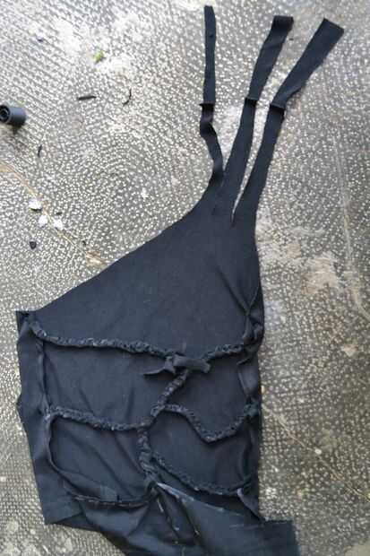 Cortar la parte delantera de la camiseta como en la foto, dividir la tira en tres y lo de la trenza.