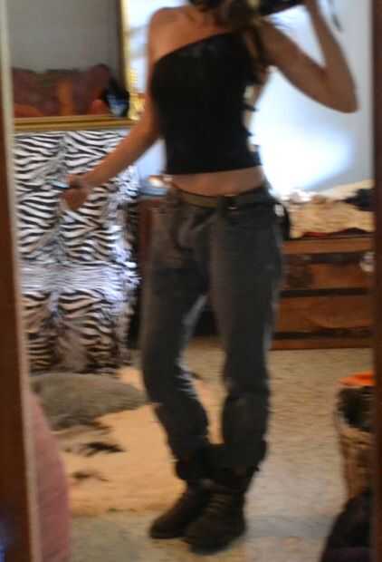 Hacer un top de frío hombro moda, barato con una camisa de franela thrifted. Marcó esta camisa de franela como nuevo en la tienda de segunda mano por sólo $3. Me inspiré para añadir recortes de frialdad después de ver algo similar en el centro comerc