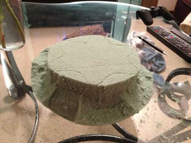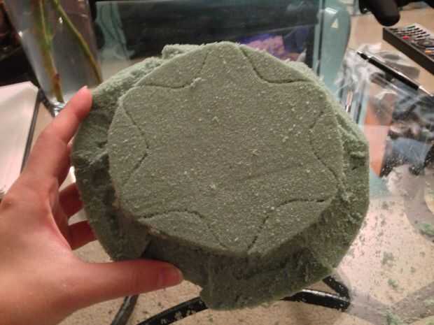 Este paso no es realmente tanto siguiendo una plantilla. 'Bosquejado' un borrador de la forma de fondo que yo quería mi cerebro babosa que. Entonces comencé a socavar en los bordes de la espuma, widdling, un poco a la vez. No es nada a esto. Visualizar a donde quieras tu babosa cerebral que en el bloque de espuma y tratar de tallar de trozos en forma de vagas. Como veis, esto comenzó a parecer un fantasma de Pac Man, así que supongo que usted podría hacer una de esas si quería.