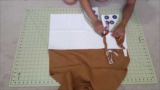 Doble la tela por la mitad para que cada tela tiene 2 capas. Si usted decide sólo puede poner ambas telas a unos de otros así que usted puede cortar todas las piezas a la vez. Cuando usted tiene piezas reducir el tiempo de a línea luego para coser. A partir de su toma externa de la tela sus tejidos patrón externo y colocarlas lado a lado, por lo que su patrón está frente a usted. Luego tomar la tela del patrón del interior y colocarlos cara abajo en las telas de patrón externo . Hacer lo mismo con la tela del forro.
