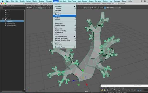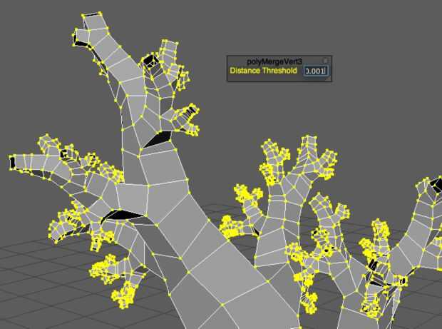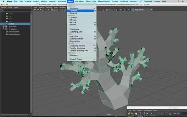 1. combinar copias: Seleccione el nodo raíz (pCube1) y luego haga clic en malla -> combinar. Esto le llevará un tiempo dependiendo del número de copias en el árbol