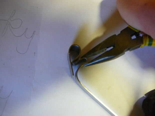 Para hacer anillos cerrados, whati hizo fue cerrar el anillo lo más posible con la plantilla y luego lo tiró en el resto con alicates de punta larga. Con pequeños lazos (ej. en la K) formó con la plantilla y con el metal raound todavía tirado con los alicates. De esta manera el lazo would't deforme.