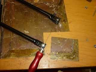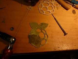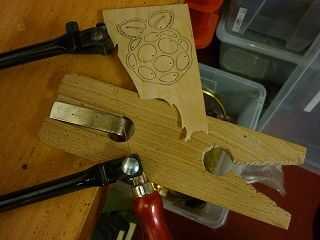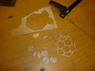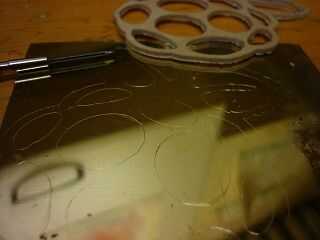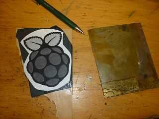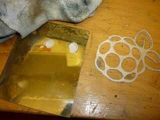 7.) uso el logo madera como placa anterior y rasguña el logo en el latón