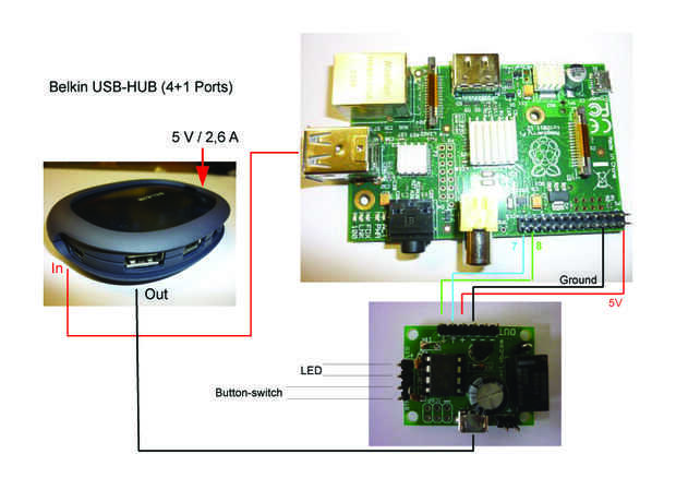 Si desea utilizar sólo una fuente de alimentación para la frambuesa y el controlador del concentrador USB,