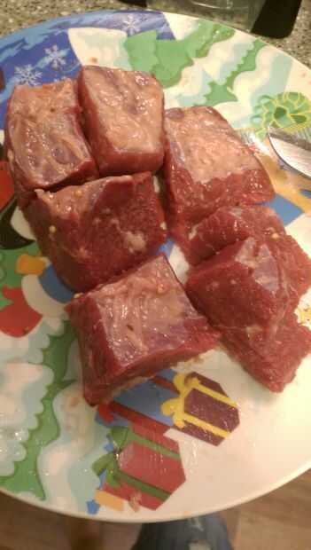 1/2 lbs Corned Beef y el suelo. (Si tu como yo y tú olvida pedir a tu carnicero que muele usted puede siempre hacerlo usted mismo)